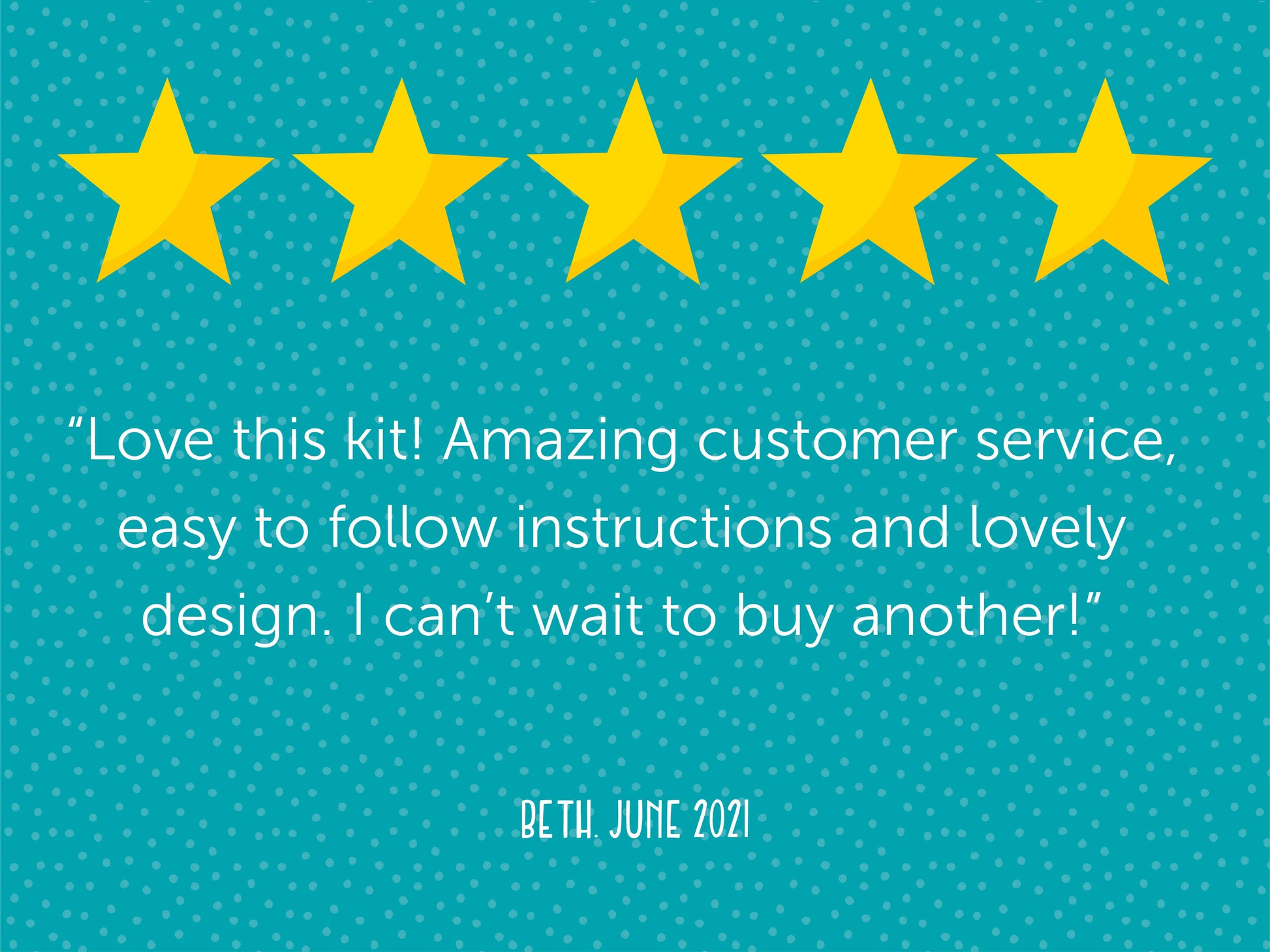 Each of our DIY craft embroidery patterns is handmade in the UK, is plastic free, and comes in a branded envelope including:
