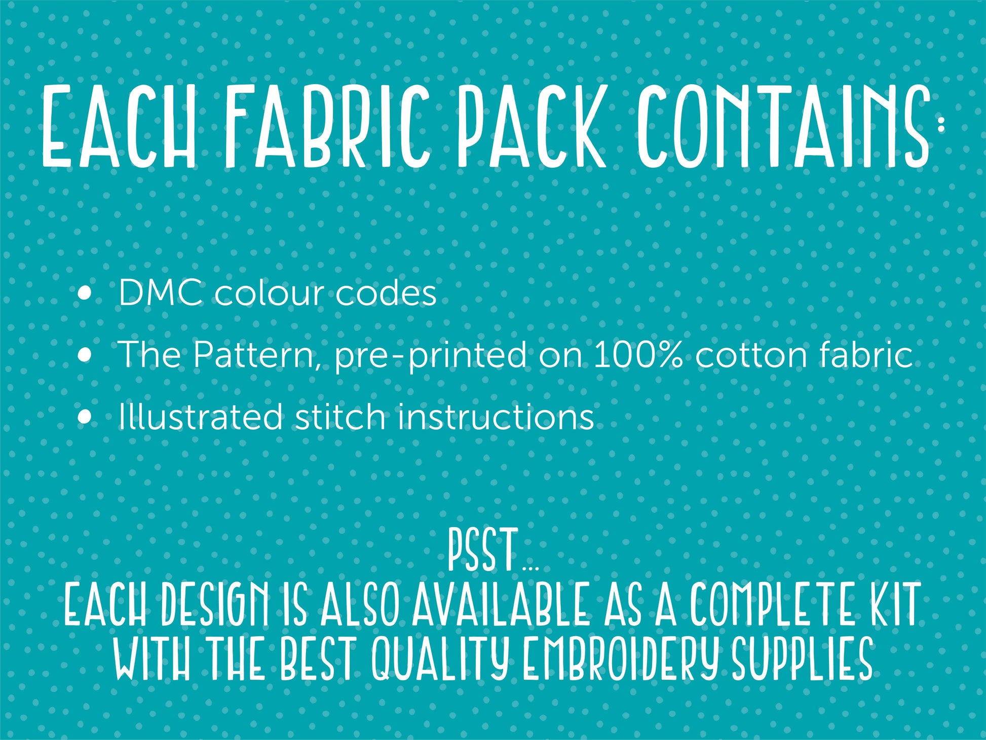 *Please note this listing is for a fabric pack only. Full embroidery kits in this design with needles, threads, hoop etc. are also available in our shop*