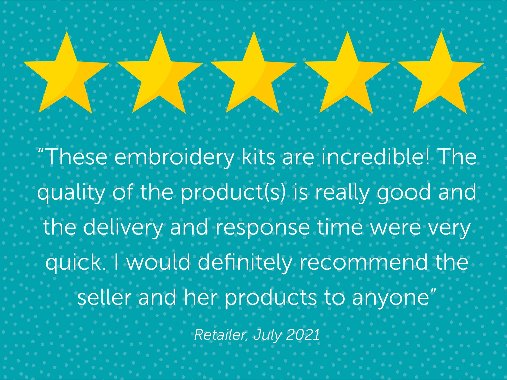 Each of our DIY craft kits is handmade in the UK with plastic free packaging and includes the highest quality embroidery supplies including: