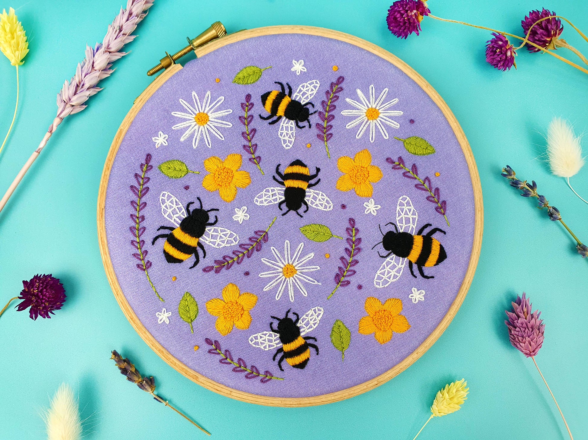 Bees and Lavender Handmade Embroidery Pattern Fabric Pack