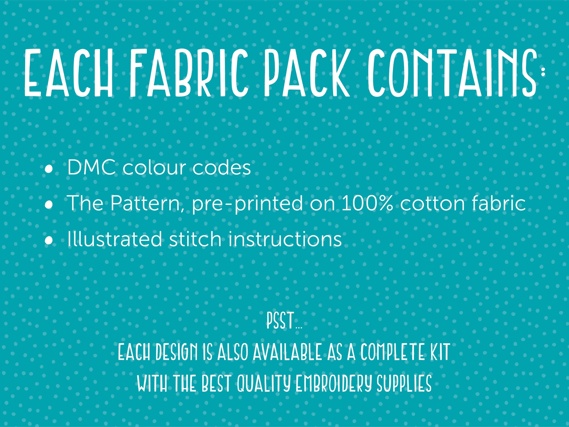 *Please note this listing is for a fabric pack only. Full embroidery kits in this design with needles, threads, hoop etc. are also available in our shop*