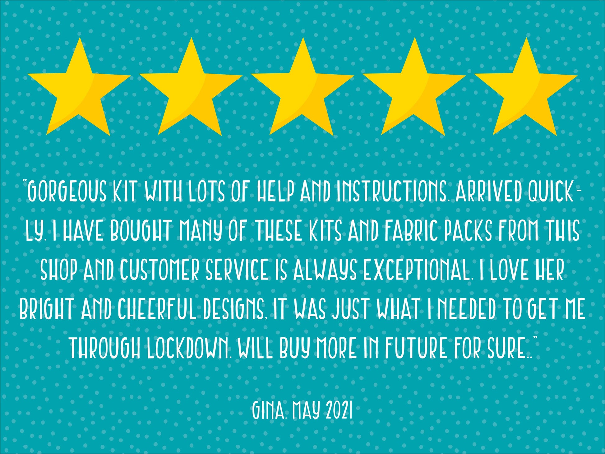 Each of our DIY craft embroidery patterns is handmade in the UK, is plastic free, and comes in a branded envelope including: