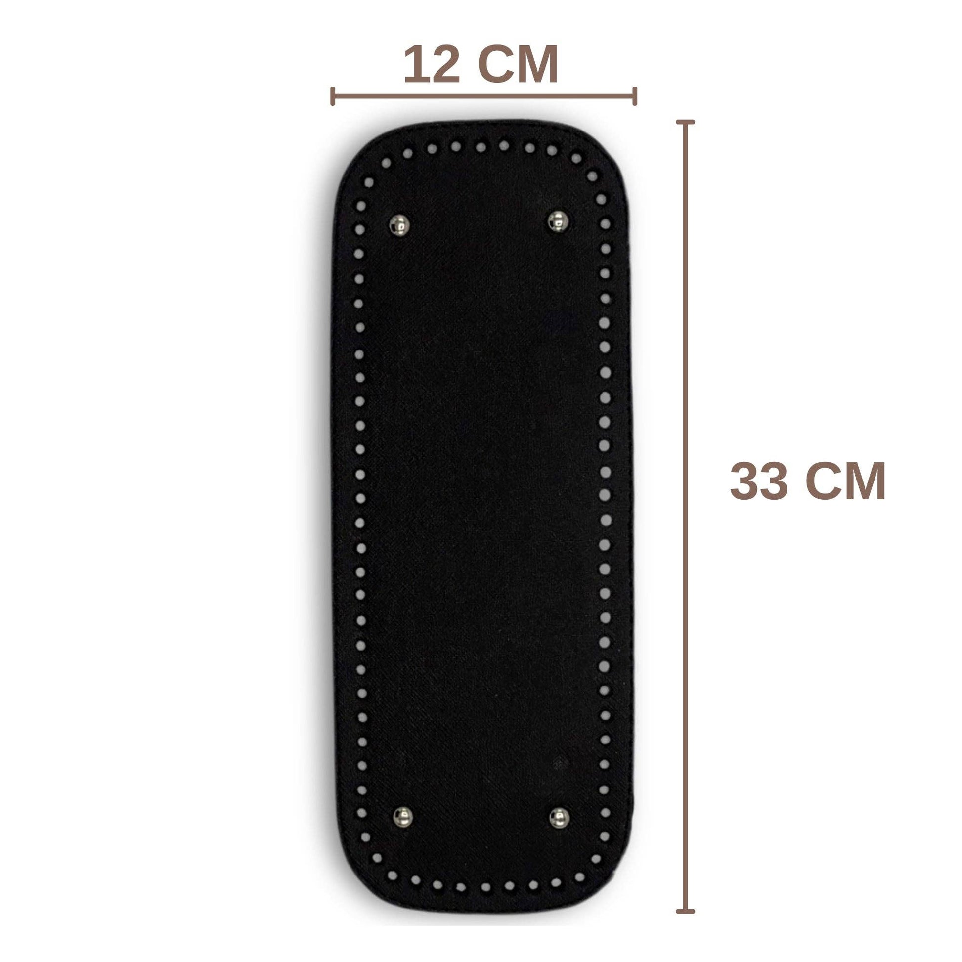 PU Leather Large Bag Base, Bag Bottom Pad (Width: 12 cm, Length: 33 cm) Add stability and structure to your bags with the PU Leather Large Bag Base, Bag Bottom Pad. Designed to enhance durability and prevent sagging, this high-quality bottom pad is perfect for large handbags, totes, and DIY bag-making projects. Product Features * Premium PU Leather: Made from high-quality PU leather for a sleek, professional finish and long-lasting durability. * Generous Dimensions: Measures 12 cm in width and 33 cm in length, ideal for larger bags that need extra support. * Reinforced Stability: Prevents sagging and deformation, ensuring your bag maintains its shape even with heavy loads. Synthetic leather.