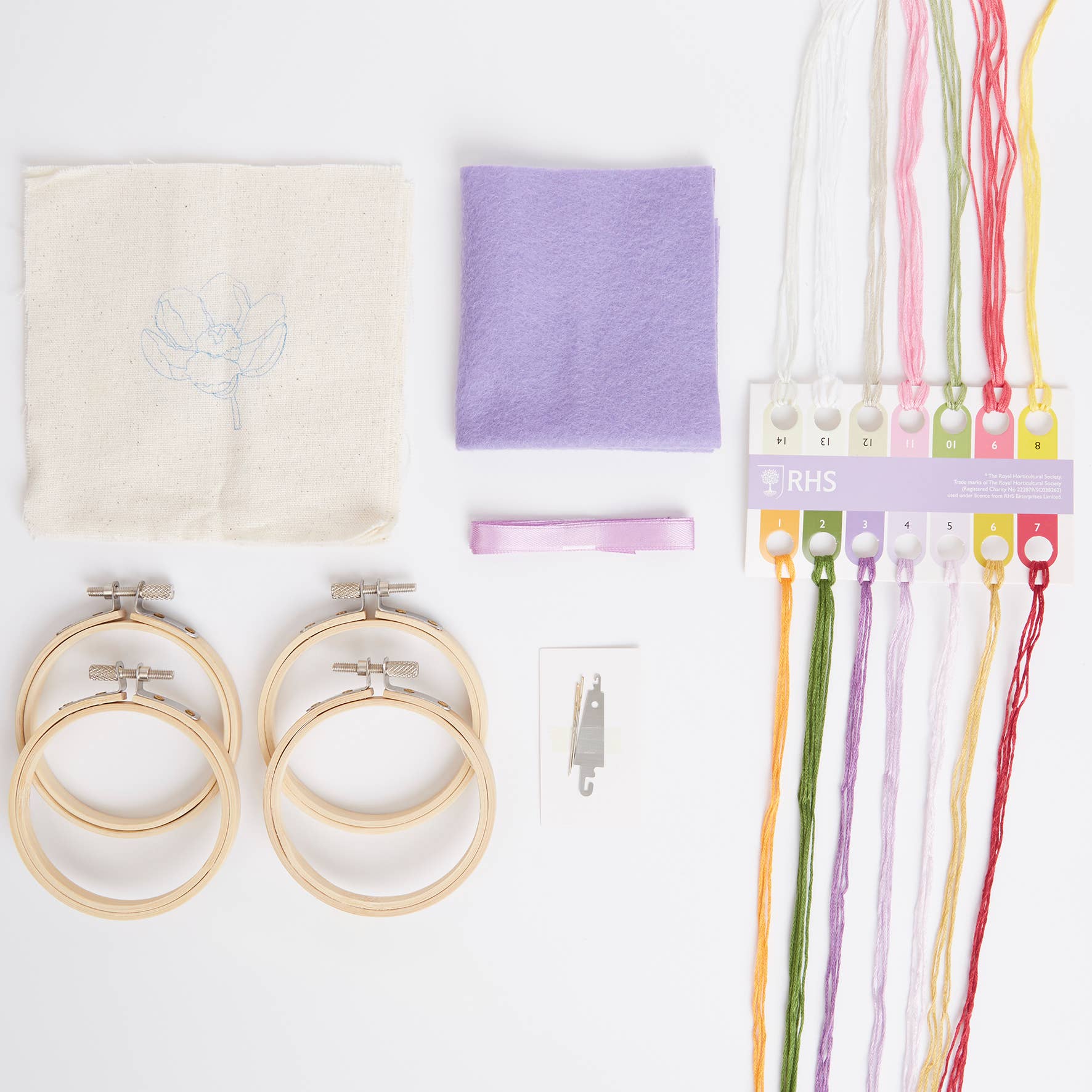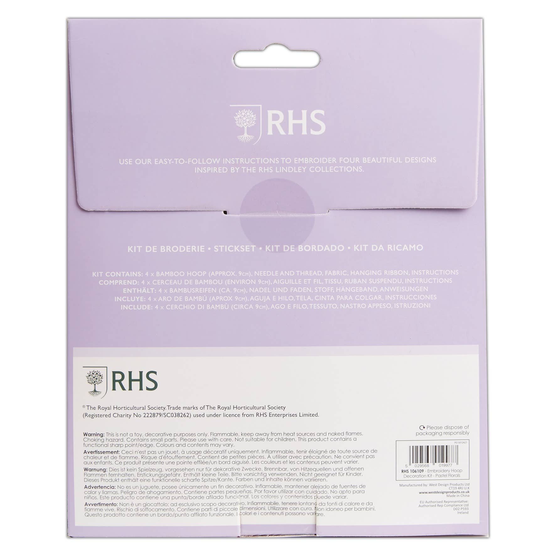 ROYAL HORTICULTURAL SOCIETY bring you this stunning Embroidery Hoop Decoration Kit (Pack Of 4), with 4 beautiful pastel floral designs. Comes with detailed instructions including how many embroidery threads are used & what colour to use.